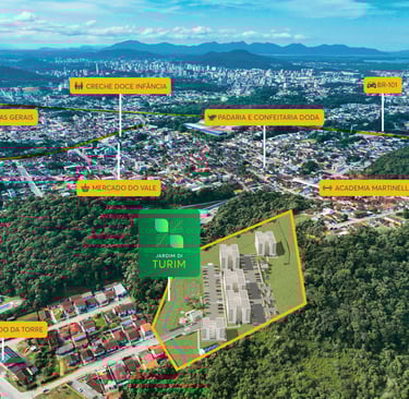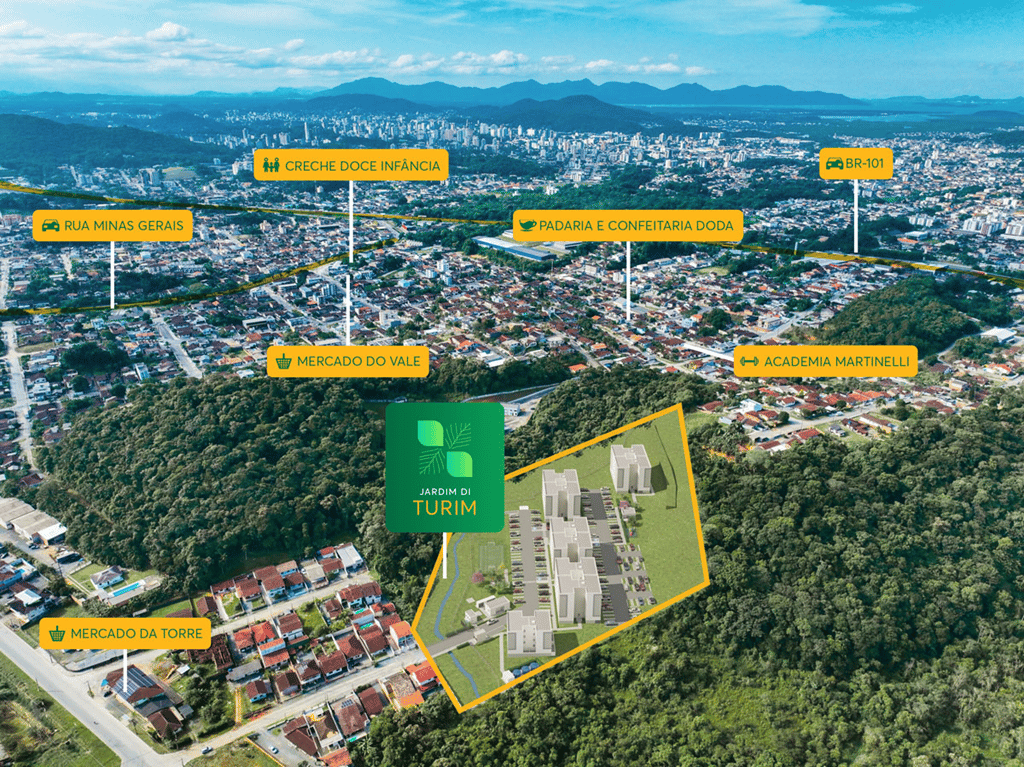 Localizado no bairro Nova Brasília, o Jardim di Turim representa a mudança de vida que você esperava. Venha viver com mais comodidade em uma região com diversas opções de comércio e fácil acesso à BR 101, tudo isso cercado por uma área verde, que é sinônimo de bem-estar e tranquilidade.